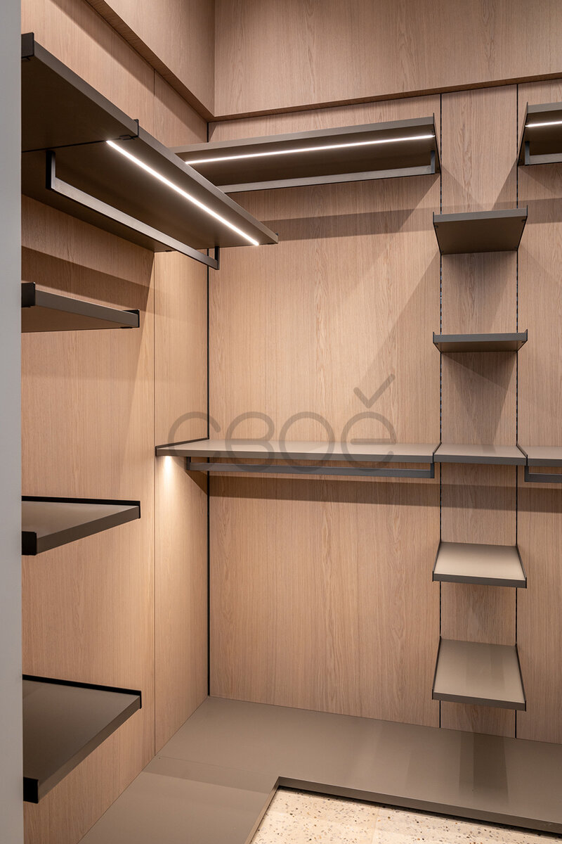 Гардеробная – это прекрасное решение для тех, кто хочет максимально эффективно использовать пространство в своем доме или квартире. Зачастую гардеробная комната представляет собой отдельное помещение, обычно располагающееся рядом со спальней или ванной комнатой. Гардеробные могут быть закрытыми и открытыми. Последний вариант представляет собой полки и штанги, которые находятся в открытом доступе и позволяют легко и быстро найти нужную одежду. Закрытые гардеробные скрывают вещи за дверцами, что может быть полезно для тех, кто хочет защитить свою одежду от пыли. На этапе планирования гардеробной следует учесть несколько факторов: предполагаемые объем складируемой одежды и площадь помещения. Важнейшим аспектом является организация пространства – каждая вещь не только должна иметь свое место, но и быть доступной. Несмотря на то, что гардеробная несет функциональную нагрузку, она обязана быть эстетически приятной и соответствовать общезаданному стилю дома. В рамках данного проекта мы изгото