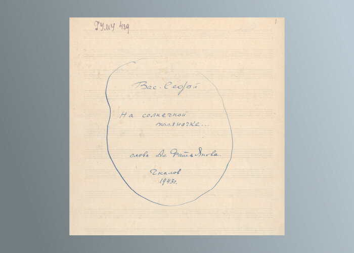 Среди драгоценных автографов песен Великой отечественной войны в Российском национальном музее музыки хранятся ноты песни «На солнечной поляночке», написанные рукой Василия Соловьева-Седого. Стихи принадлежат Алексею Фатьянову. Его поэзия очень музыкальна. Со многими композиторами привелось работать Фатьянову, но самый плодотворный творческий союз получился с Соловьевым-Седым. Вместе они создали песни «Давно мы дома не были», «Потому что мы пилоты», «Золотые огоньки», «Где же вы теперь, друзья-однополчане?», «Дорога-дорога», «Соловьи» и многие другие. В годы войны Фатьянов выступал перед бойцами на передовой с фронтовым ансамблем, сочиняя для этих концертов частушки, сценки, стихи и песни. Ранения и горечь поражений первого года войны на сломили дух поэта-песенника: он пишет стихи, наполненные светом и оптимизмом. С теплом и юмором рассказывает он, как «на солнечной поляночке» молодой боец поет о своей любви, о том, как «черноглазая» свела его с ума. Парень аккомпанирует себе на «талья