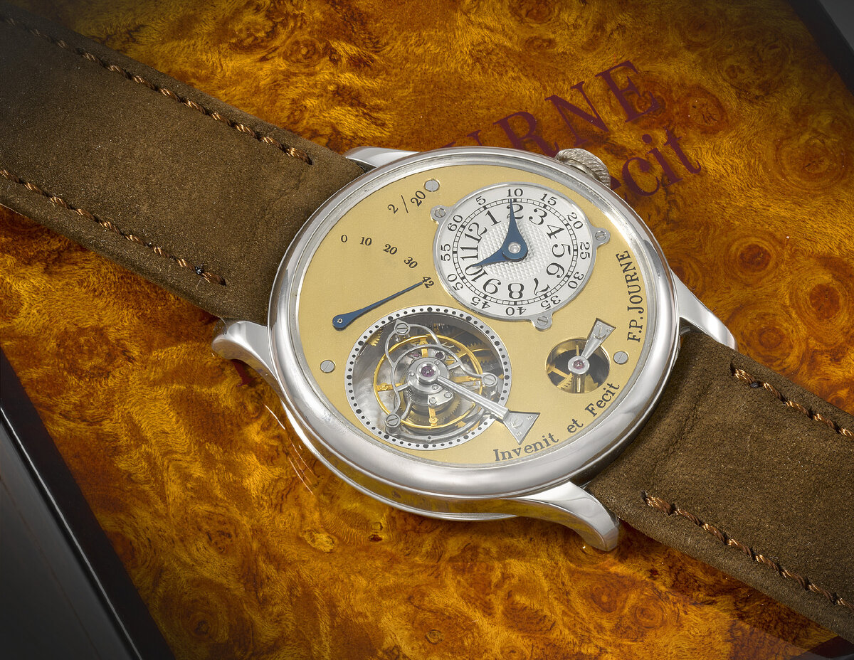 Эти часы были выпущены в 2020 году в честь открытия бутика F.P. Journe в Дубае. Изюминка модели – корпус из платины дополняет циферблат необычного зеленого оттенка. Особенность этого издания – отсутствие индикатора запаса хода, который есть в стандартных моделях серии. На торги был выставлен 64-й из 99 экземпляров серии. При эстимейте CHF 60,000 – 120,000 часы ушли с молотка за CHF 182,700.