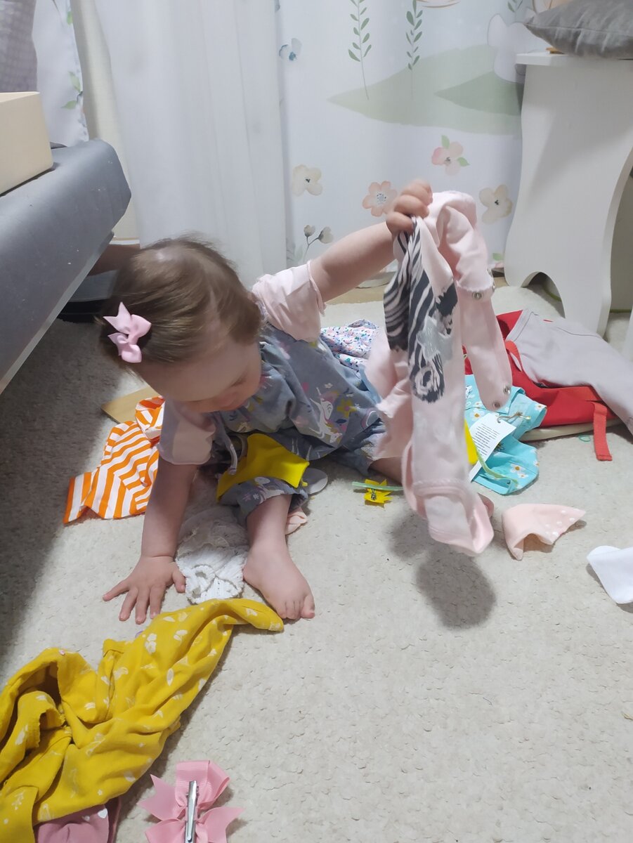 Перебрала Полинкин гардероб. Будет еще пара костюмчиков из совместных закупок, но в целом на лето Полюнчик одета. Поля еще та шмоточница :))), тряпочки разноцветные она любит. Ей скоро два года, но она пока не ходит. Зато у неё прекрасная растяжка (с которой мы боремся). Но пока почесать подбородок ногой, да запросто. Так что учитывая эти особенности, большая часть Полиного летнего гардероба это различные комбинезончики. Бодики и легинсы. Есть все же одна юбочка и пару сарафанов, но это из моих двух покупок пакетов одежды на Авито. Сама бы я наверно покупать не стала. Но раз они у нас есть, то пришлось заказать специальные трусики на памперс (они еще не пришли). Что бы памперсом не сверкать :))))) Все наши джинсы и джинсовки тоже оттуда. С моей точки зрения это не очень удобная одежда. Но малыши в них так мило смотрятся :)))) Это больше домашние костюмчики, но и во дворе в песочке посидеть подойдут. На прохладную погоду. Сарафанчики :))) Навела порядок в Полином мини комоде. Бра