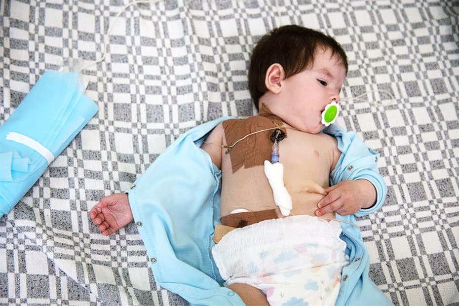 У полуторагодовалого Миши из чувашской деревни Новое Изамбаево болезнь Гиршпрунга и синдром короткой кишки. Это по названию. А по сути у него из всего кишечника работает только 80 см. Мишу почти круглые сутки приходится кормить парентерально, то есть через вставленный в вену катетер. Чтобы просто прогуляться с мамой по коридору больницы, где он сейчас лежит, приходится везти за собой стойку с трубками и питательной смесью. Впереди долгое лечение и операции. А прямо сейчас, чтобы дождаться, пока за финансирование возьмется Минздрав, необходимы лекарства, расходники и ингредиенты для парентерального питания. Иначе Мише не продержаться. Мама Венера занимается готовкой, а Миша лежит на коврике в окружении двух старших братьев, Матвея и Макара. Первому шесть, второму четыре, играть с младшим пока не очень получается. Но они уже могут позаботиться о его душевном равновесии: стоит Мише заплакать, как один из старших быстро вручает ему что-то крайне интересное – например, мягкую игрушку или ма