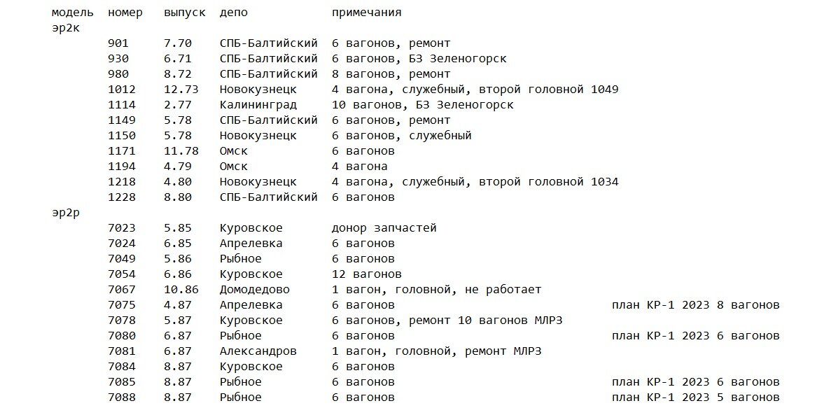 Продолжаю ежедневно мониторить ситуацию с передачами из депо в депо, с расцепками и сцепками, тем более, что скоро пойдёт волна ремонтов, а возможно, и новых списаний.