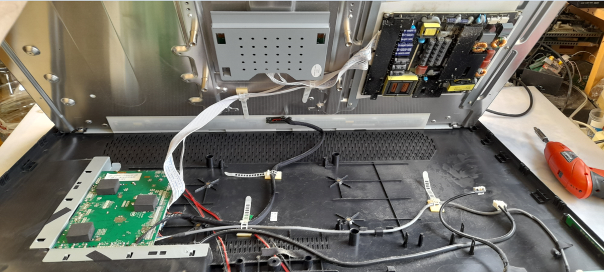 Всем здравствуйте! Хочу начать статью с анекдота. "Выходит гинеколог с работы на улицу и произносит фразу - наконец-то лица". Так и у нас наконец-то телевизор. Замучили всякие чайники и микроволновки и прочая лабуда. Итак у нас на ремонте телевизор Mystery MTV-3211LW с диагнозом не включается. По факту получается такое. При включении в сеть телевизора светодиод дежурного режима из "красного" переходит в "синий". Реакция только на одну кнопку - включение. Пульта нет. При включении загорается подсветка , на экране изображения нет. А в динамиках раздаётся скрежет что аж уши режет. Вот такой интересный дефект. Давайте посмотрим что можно сделать. Разбирать этот телевизор нужно аккуратно дабы не повредить разъём матрицы. Выкрутим винтики и слегка расчепурим :) А дальше будем посмотреть. Блок питания tv3202-zc01-01 с ним у нас всё отлично. Напряжения 5, 12 и 24 вольта присутствуют. Драйвер подсветки T87D106.00 тоже исправен. Майн плата MSTV3208-ZC01-01 ремонт её мы и будем производить. К