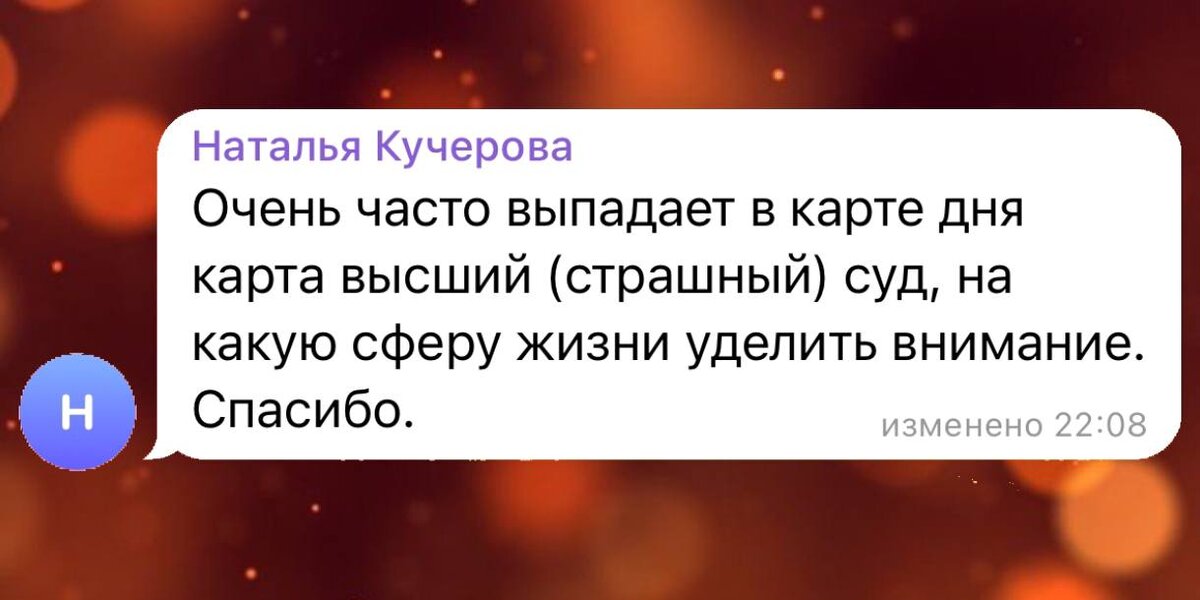 У меня с моими подписчицами, читательницами и ученицами есть рубрика вопрос-ответ. Мне задают вопросы, а я на них с радостью отвечаю. Ниже несколько вопросов на тему Таро и ответов на них. Почему постоянно выпадает одна и та же карта? Важно, какая карта выпадает. В данном случае это Высший суд. Без разбора конкретной ситуации можно только сказать, что Высший суд означает жизненный урок, который нужно пройти. Это может касаться любой сферы жизни, просто наблюдайте за повторяющимися ситуациями и меняйте в них, например, свое поведение. Может ли одна и та же карта иметь разные значения? Возможно, одна и та же карта будет отыгрываться в разных сферах. А в разных сферах она может иметь полярные значения. Например, для одной позитивная, а для другой негативная. Может ли состояние влиять на расклад? Да, конечно. И для того, чтобы сделать качественный расклад, нужно уметь отключаться от карт и не пытаться на них повлиять. Этому я учу своих учениц. Стоит ли говорить ребенку, что я занимаюсь Тар