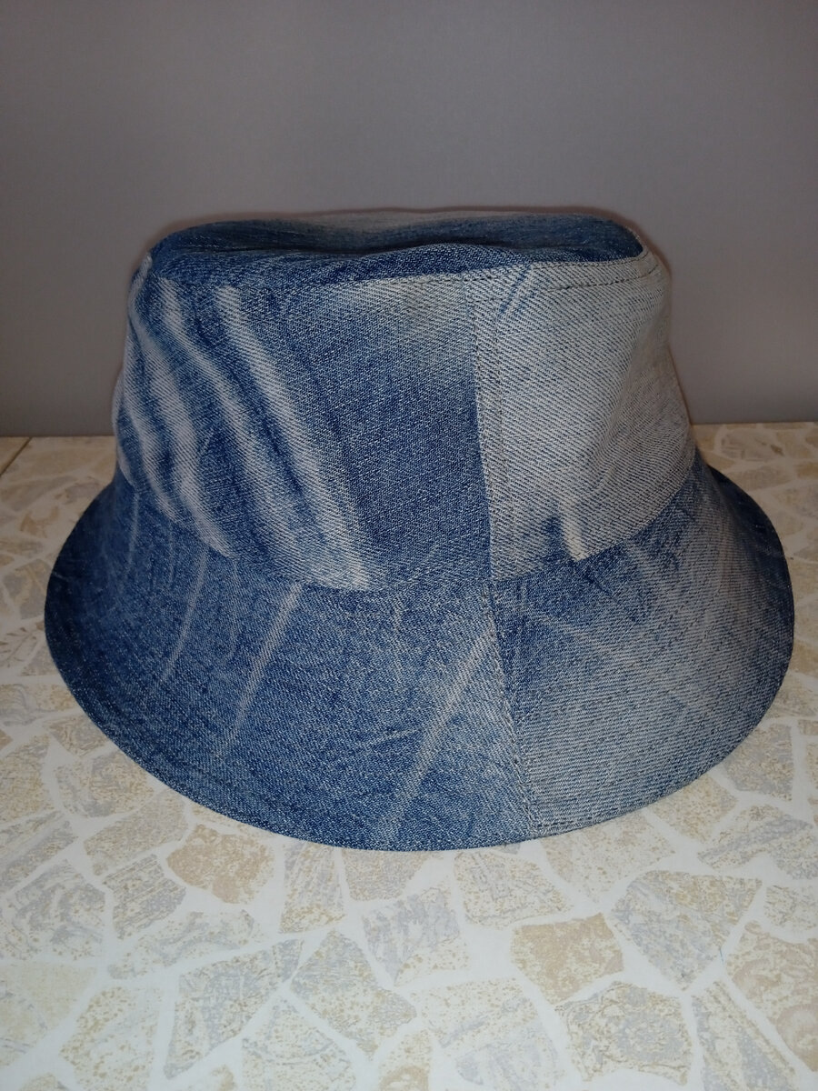 Чтобы сшить эту панаму, сняла выкройку с покупной мужской панамы. Размер скорее мужской. Выкройка состоит из донышка диаметром 16 см, Основных деталей четыре или две со сгибом. Поля панамы: верхняя часть четыре или две детали со сгибом и нижняя часть тоже четыре или две детали со сгибом. Все детали на рисунке с размерами и построением. Выкройку вырезала из бумаги. При раскрое ушло два задних полотнища широких джинсов. Припуски на швы 1 см. Сначала собрала основную часть, она у меня из двух деталей. швы отстрочила на 0,1 и 0,5 см. Приметала донышко, в этот раз хорошо село с первого раза. Пристрочила донышко и закрепила шов на основной детали двумя строчками на 0,1 и 0,5 см. Детали полей соединила, швы разутюжила и отстрочила на 0,1 см. Сколола швы и соединила строчкой на 0,5 см. от края. Вывернула поля и отстрочила на 0,1 см от края по верхней детали. Для плотности полей можно детали проклеить флизелином, но у меня достаточно плотная ткань и проклеивать не пришлось. Простегать поля пол