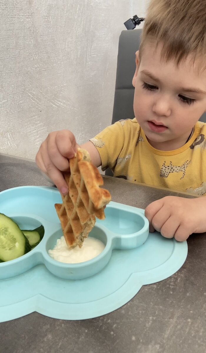 Необычные рыбные вафли с тунцом на завтрак для детей. А заменив тунец на детское рыбное пюре, такое блюдо можно предложить малышу с 9 мес.
