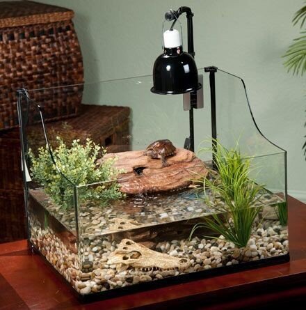 Перед тем как покупать черепаху нужно выбрать для неё хороший аквариум и сразу же обустроить его, а как это сделать Я щас расскажу Аквариум Аквариум для черепахи нужно выбирать такой, что бы он привышал размер черепахи(по панцирю) в 7 раз. Максимальный размер может быть на 150 л. , а минимальный 40л. Если выберете слишком большой-черепаха запутается, а если слишком маленький, то наоборот ей будет тесно. Кстати, что бы сэкономить, можно просто взять обычный контейнер с такими же литрами, как указанно выше. Отличаться чем то от аквариума он не будет. Ультрафиолетовая лампа и лампа накаливания Что бы черепаха не болела и получала нужную дозу витаминов и тепла, нужно поставить ей эти 2 лампы Лампа накаливания может быть: Другие брать не советую Ультрафиолетовая лампа устанавливается на высоте 30 см, иначе у черепахе будет ожог глаз. Фильтр Для черепахи подойдёт внешний фильтр, но подойдёт и внутренний. А некоторые устанавливают сразу оба, что бы один отчищал большую грязь, а другой