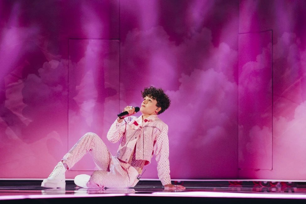 Исполнитель начинает сидя на стуле и играя на гитаре, а затем расходится в вокале. К концу выступления выбегает девушка и проводит краской по его телу. Очень странный бэк ему подкрикивал (именно подкрикивал) на втором плане. Внешностью парень очень похож на барабанщика из группы Måneskin.