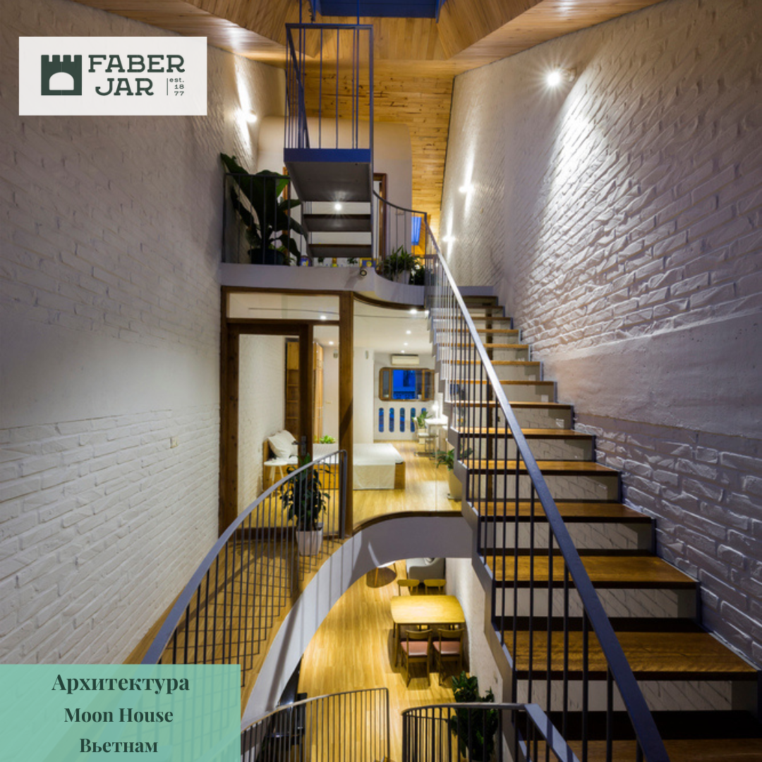 🏚 Пространство дома спроектировано как одна непрерывная большая комната. Изогнутые стены и лестницы оптимизируют пространство с учетом нерегулярных ограничений участка и создают разнообразие пространства, добавляя ощущение мягкости.