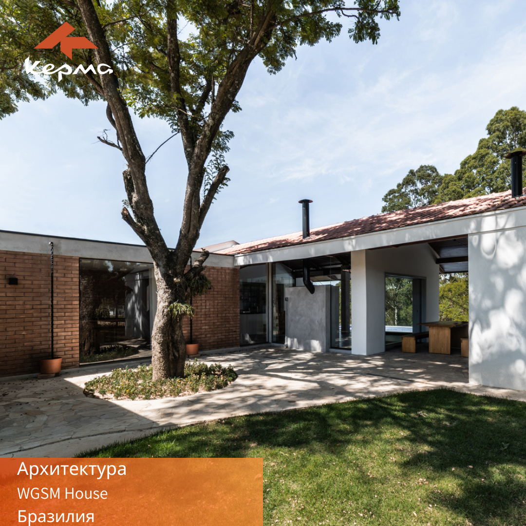 ✏️ Проект GSM House из двух объемов от студии OTP arquitetura гармонирует с окружающим ландшафтом, сохраняя дерево, расположенное в середине участка для живописного внутреннего дворика с бассейном.
