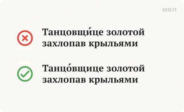 Всех запутал Александр Розенбаум: в его песне «Вальс бостон» ударение авторское, в угоду рифме. Многие, правда, принимают его за единственно верное и делают ошибку. Но больше не будут. Правильно: Танцо́вщице И со всей округи люди приходили к нам, И со всех окрестных крыш слетались птицы, Танцовщице золотой захлопав крыльями… Как давно, как давно звучала музыка там. Это та самая цитата из песни Розенбаума «Вальс бостон», в которой поется про какую-то «танцовщицу», а на самом деле она, конечно же, «танцовщица» и никак иначе. В словаре «Русское словесное ударение» под редакцией М. В. Зарвы, которым пользуются работники радио и телевидения, сделана даже особая помета — «не танцовщица». Запоминать ударение будем при помощи других, на этот раз грамотных, рифмованных строк: «У столяра жена — танцовщица, у маляра же — дрессировщица». Ещё больше весёлых и полезных карточек о русском языке — в «Грамотности» на «Меле» во «ВКонтакте». Подписывайтесь, чтобы всегда говорить и писать правильно!