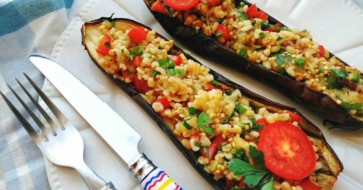 Фаршированные баклажаны по восточному - это традиционное блюдо арабской кухни, где баклажаны используются в качестве емкости для начинки из мяса, риса и овощей. Баклажаны вынимают сердцевину и заполняют ее фаршем, приготовленным из мяса или рыбы, соуса, приправ и овощей. Их запекают, пока баклажаны не станут мягкими и начинка не будет сочной. Восточные фаршированные баклажаны могут быть приготовлены различными способами, добавление приправ и трав в состав начинки позволяет приготовить блюдо различных вкусов. Также, в зависимости от региона, добавляют разные ингредиенты к начинке, например, в турецких и греческих рецептах использование грецких орехов, изюма и тертого сыра. Ингредиенты: 4 маленьких баклажана 500 гр. фарша (говяжьего или баранины) 1 луковица 3 зубчика чеснока 1 крупная морковь 1 крупный помидор 1/2 стакана риса 1 стакан бульона (можно заменить водой) 2 столовые ложки томатной пасты 2 столовые ложки масла для жарки соль, перец, паприка по вкусу Приготовление: Баклажаны ра