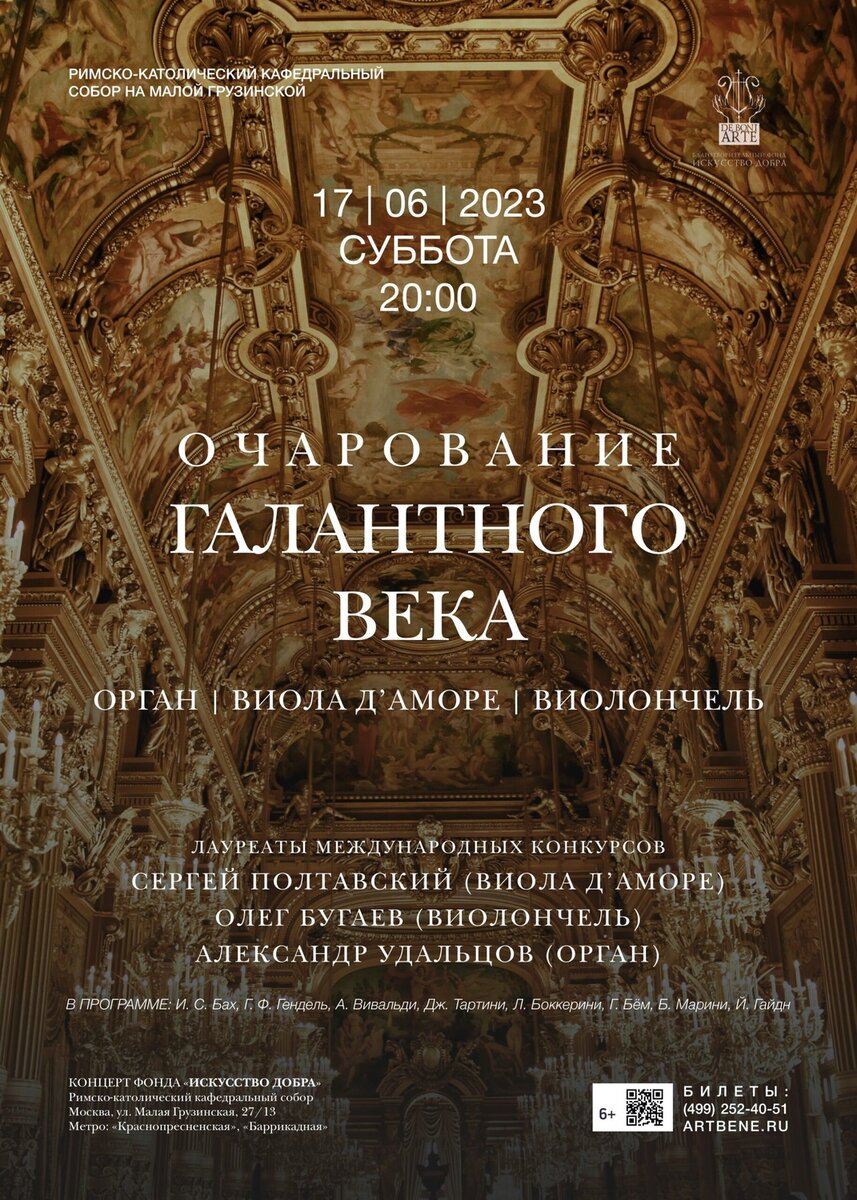 Виола д’аморе переводится как «альт любви». Она чуть больше скрипки, а дополнительные струны придают тембру особую задушевность. В эпоху Барокко именно этому инструменту поручали рассказывать о нежных чувствах. Лирический голос ушедших столетий прозвучит с виолончелью и органом в Соборе на Малой Грузинской. В программе итальянская музыка XVIII века, а также произведения Баха, Генделя и Гайдна. В программе концерта: И. С. Бах