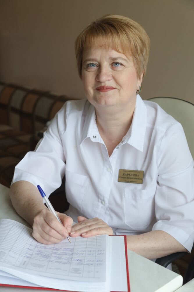 12 мая — День медицинской сестры Каждый родитель испытывает сильную тревогу, если заболевает ребёнок. В преддверии профессионального праздника мы расскажем о тех, кто находится рядом с нашими детьми во время лечения в стационаре, кто ухаживает за ними и строго выполняет все рекомендации врача. Отделение педиатрии в стационаре Районной больницы занимает два этажа. Сюда поступают дети с любыми патологиями, за исключением инфекционных заболеваний. Отделение развёрнуто на 39 коек, которые не пустуют никогда. Более того, если возникает необходимость, создаются дополнительные места, и такое случается нередко. Во время пандемии детей принимали после отрицательного результата ПЦР-теста. Отделение оставалось «чистым» все три года с начала пандемии. Елена Вячеславовна КАРЕЛИНА — старшая медицинская сестра педиатрического отделения. Родилась и выросла в Александрове, образование получала в медицинском училище в Орехово-Зуеве. Получила диплом по специальности «медицинская сестра детских лечебно-п