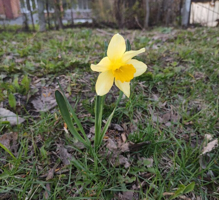 Смотрите, это Нарцисс, проросший на пустыре. Непонятно откуда он тут и зачем. Мол, "ребята, я тут первый, а где все?". "Ты дурак, так зацветать? Нельзя же, тебя сорвут!". Понаблюдал за ним в этот вечер. В этот угол обычно только собачники заходят, все видят и не трогают одинокий цветок. Проникся верой в людей, мол, все понимают, что это странный цветок и пусть он вырастет хоть как-то. В итоге, вернулся через 4 дня проверить, как там мой друг, и застал ужасное место преступления: Цветок вырван! Это убийство! [да, я понимаю, что вырывание цветка не убивает растение полностью, но немного лишает его смысла жизни, как письку оторвать, да; да и способен ли нарцисс отрастить ещё один цветок себе или нет, я не знаю] Просто сам этот факт меня чутка задел, хотя в глубине души я понимал, что по-другому случиться просто не могло и произойдёт это скорее раньше, чем позже. В любом случае, оказалось, что не нужно быть самым умным детективом, чтобы раскрыть это дело. Вот тут присыпанный землёй уже зав