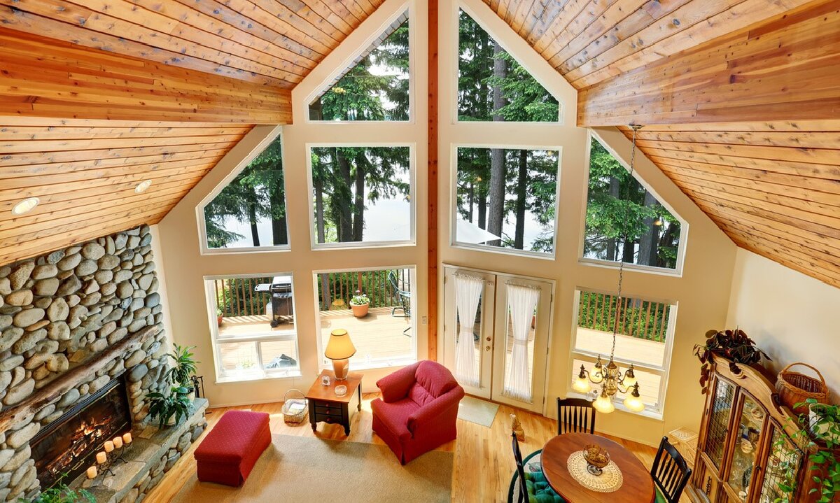 Избыток декора становится отвлекающим фактором, когда у вас А-образная рама с прекрасным видом и деревянными потолками.