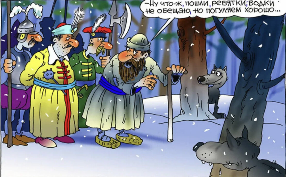 Ивашка Сусанин сидел на печи, Ругал губернатора, жрал калачи… Вдруг скрипнули петли три раза подряд И польский на двор завалился отряд. «Эй ты, старый хрыч, ну ка с печки слезай! Кафтан, сапоги да кушак надевай, Веди нас скорее в Москву, во дворец - Наступит царю Михаилу песец!» «Дорогу я знаю», - ответил Иван, - «Но вдруг помешает густой нам туман? В чащобах, ведь, лешие злые живут, И если нарвемся - тут нам и капут! Кикиморы воют у самых болот, На озере круглом русалка поет, В реке, в полынье водяного видали… Утащат – и все! Поминай лишь как звали. В лесах буреломы, не видно ни зги...» «Да врешь ты, как Троцкий!», - смеются враги, - «Ты лучше подумай про денег мешок! А коль не согласен – лишишься кишок…» «Бог с вами, робяты», - ответил герой, - «Hо! Только чтоб денег ввалили горой! Кишки мне дороже любого царя! Тут главное, что б мы сходили не зря…» Поляки по лесу часов семь идут… Дороги не видно ни там и ни тут! «Куда ж мы залезли?», - спросил атаман. «Тер