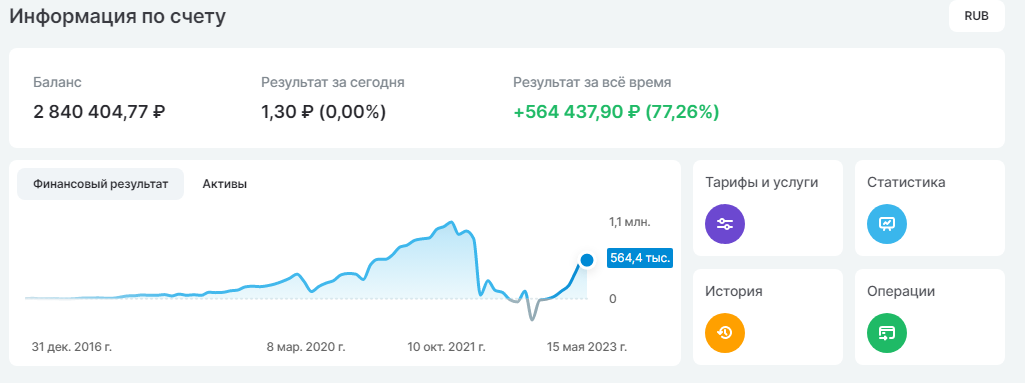 Я планирую выйти на неё в 42 года, то есть менее, чем через 5 лет (в этом году мне исполнится 38). Итак, если посмотреть на финансовый результат, то можно увидеть, что портфель довольно бодро стал выбираться из "минусов".