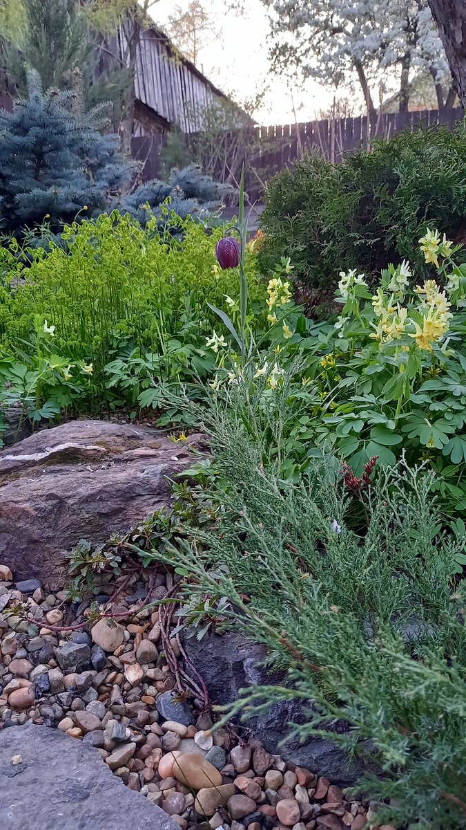 Доброго дня! Работа над проектами будущих садов заняли весь апрель. Это "коварный месяц" (у нас на Урале), я не верю апрельскому теплу, поэтому с садовыми работами никогда не тороплюсь. Тихонько наблюдаю в окно, как просыпается сад и начинаю собирать "садовую мозаику"... Листья с осени не убираю, слежавшиеся за зиму, они служат "одеяльцем" просыпающимся весенним первоцветам. Молодые ростки поднимают прошлогоднюю листву, показывают первые листья и цветы. В этом году совсем не распустились крокусы... Зато, ожидаемо, к концу апреля появились соцветия хохлаток, которая потихоньку наступает на сад и огород, окрашивая все в желтые цвета. Созревая коробочки с семенами хохлатки трескаются и семена разлетаются вокруг. Каждый год я борюсь с "поголовьем" желтых хохлаток, обрывая коробочки с семенами....А желтые хохлатки не обращают на это внимания и селятся везде! Просыпается все медленно, недружно, сказывается сухая осень и весна. Нарциссы не похожи на себя, ножки у цветов короткие. Японские спи