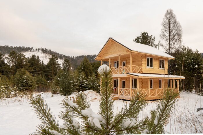 Зимой я закончит строить чудесный деревянный домик в 2 этажа! Домик построил из бруса, недалеко от города Иркутска, в живописном месте окруженным сосновым лесом. Вот такой получился дом получился ) Кому интересно есть небольшое видео. Про планировку я расскажу чуть ниже, а проект полностью выложу в следующем посте. Дом построен из бруса естественной влажности, 180 на 180 мм. Это основной деловой лес в Иркутске и из него строится 90% деревянных домов. Здесь использовался зимний лес Конечно особенность этого места - окружение, кругом сосны и ели. Кажется, что искусственная изгородь из молодых сосен возникла здесь с помощью человека, но все произошло совершенно случайно. Прямо около дом - густой ряд сосен, чуть подальше сосны уже взрослые и далее уже стоит сосновый бор. Конечно, от свеже строганного леса на площадке стоит шикарный запах, но и без него, такое обилие зелени зимой заставляет кружиться голову от избытка кислорода. Насладиться этой природой, хозяева могут полным ощущением