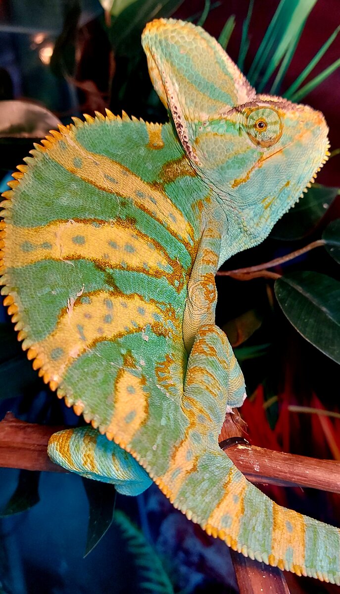 Всем доброго дня ! Умеют ли хамелеоны дружить или всю жизнь проводят в одиночестве ? Создают ли пары ? Ухаживают ли за потомством ? Можно ли поселить двух хамелеонов вместе ? Возможно ли приручить ? Ответы на эти вопросы вы сможете найти в этой статье . Приобретать хамелеонов рекомендуется в самом раннем возрасте , их проще всего приручить . Определить возраст хамелеона сложно . Рекомендуется руководствоваться правилом , чем меньше тело хамелеона , тем он младше. Я приобретала хамелеона в возрасте 2 недель , он был со спичечный коробок. Приручать следует постепенно. Сгонять потихоньку с веточки , подставив ладонь , чтобы хамелеон перешёл на неё , как на продолжение ветки. Держите немного на руках. Вообще характер у Хамелеонов скверный. Мой Гоша до сих на меня "рот открывает" , в знак недовольства. Хотя очень много уделяю ему внимания. Но ему приходится со мной мириться , хочется подержать его на руках. Муж даже смеётся , когда я открываю террариум , говорит " Гоша беги ! " ) А вот