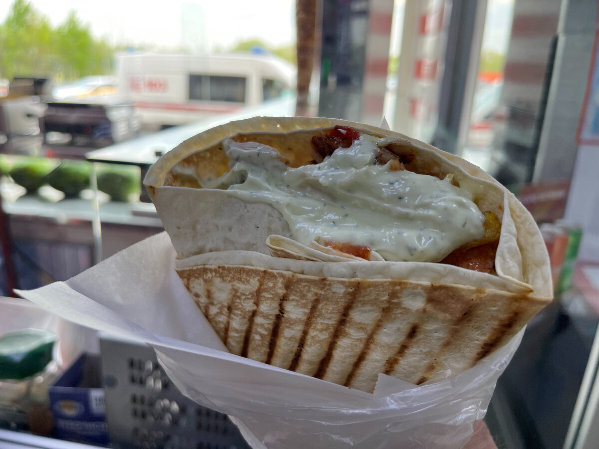 В мясном магазине с говорящим названием «Халяль» в московском микрорайоне Новое Бутово уже довольно давно открылся закуток с шаурмой. Но у меня всё никак не получалось её попробовать. То зима на дворе, то настроение не то, то ещё что-нибудь. А тут совершенно случайно получилось, хотел я того или нет. Можно сказать и так – мимо проходил, да не смог удержаться. Халяльная лавка эта находится на первом этаже многоквартирного дома через дорогу от торгово-развлекательного центра «Бутово Молл». Соседняя дверь – моя любимая чайхана, в которой я неоднократно обедал и каждый раз получал невероятное удовольствие. Кстати, возможно, это одна из причин, почему я до сих пор не попробовал халяльную шаурму – когда стоит выбор: поесть вкусно и недорого в аутентичном предприятии питания или довольствоваться стритфудом-фастфудом, я выбираю первый вариант. Кстати, давно к ним не заглядывал, а в меню чайханы ещё много блюд, которые я ещё не пробовал. Но вернёмся к моему неожиданному перекусу. Утром я свозил