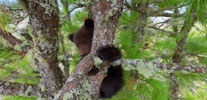 Недалеко от Артыбаша спасли медвежонка-сироту, который два дня просидел на дереве