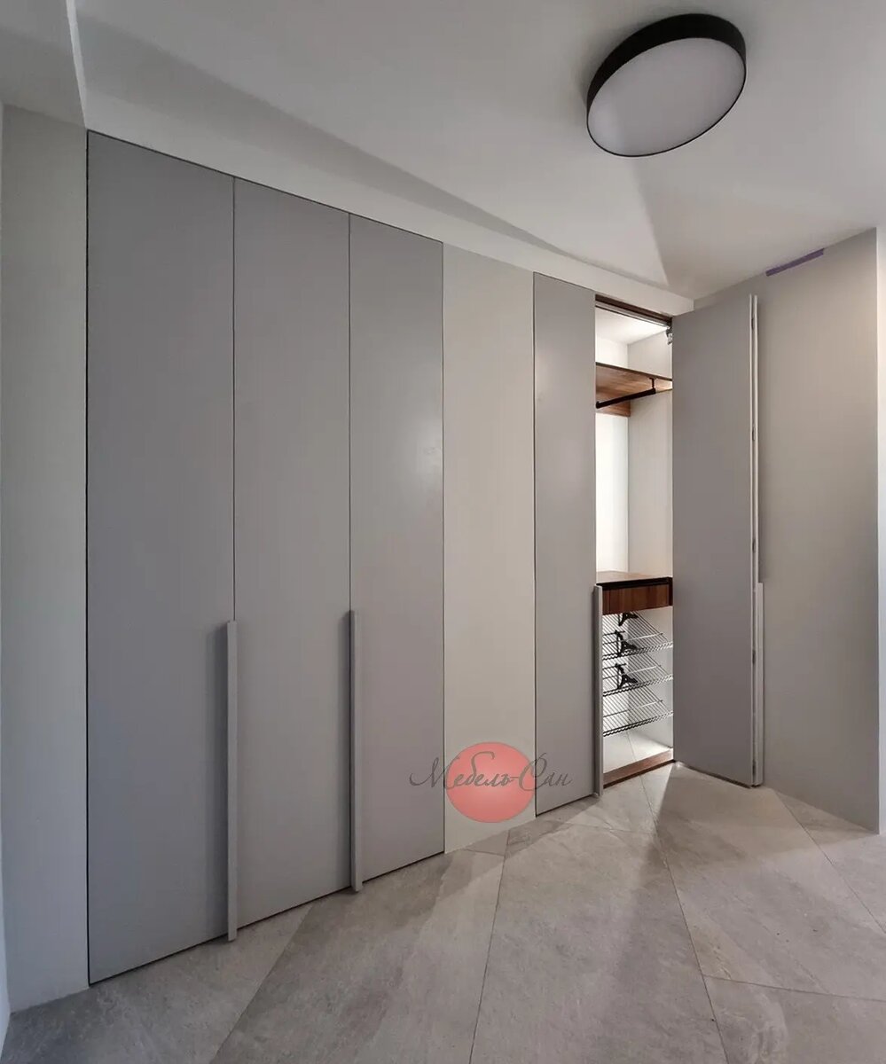 Два встроенных шкаф-купе. Материал изготовления: фасады МДФ крашенный матовый. Наполнение шкафов ЛДСП Egger, гардеробная система Modus, выдвижные ящики Quadro 25 Hettich, подсветка внутренней части шкафов с даводчиком движения на открытие. Механизм раздвижения WingLine L Hettich. Ручки массив дуба, окрашенные в цвет фасадов. Заказать эту или другую представленную в каталоге нашей компании оригинальную модель мебели Вы можете обратившись в "Мебель-Сан". Не нашли подходящую? Звоните и мы предложим то, что нужно именно Вам! ☎️+375296100084 +375297710041