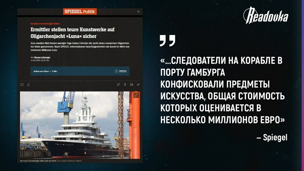 Имущество оценивается в несколько млн евро. Сотрудники уголовной полиции Германии конфисковали коллекцию произведений искусства с яхты российского бизнесмена, который подозревается в нарушении санкций. Имущество оценивается в несколько млн евро, сообщает Spiegel. Дорогостоящая коллекция произведений искусства с роскошной яхтой Luna, принадлежит российском бизнесмену Фархаду Ахмедову. Стоимость «конфискованных» активов оценивается в несколько млн евро. Весной 2022 года яхта была «заморожена» в порту Гамбурга. Ее стоимость оценивается почти в 400 млн евро. ФРГ проводит расследование в отношении Ахмедова, которого подозревают в нарушении закона о внешней торговле. Бизнесмен также обвиняется в отказе сообщать о своих активах в Deutsche Bundesbank и Федеральное управление экономики и экспортного контроля, за что положен уголовный срок после включения в санкционный список ЕС. Ранее Readovka писала о том, что в британском МИДе конфискацию российских активом назвали «непростым делом».