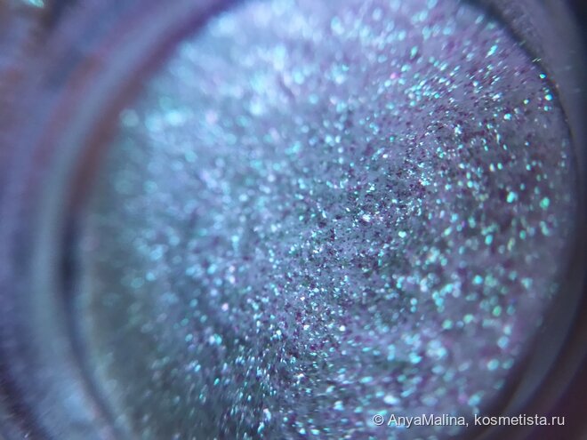 Есть тени, которые способны оживить и добавить акцентов в любой макияж. Хроматический рассыпчатый спаркл #102 Victoriya Stanevich Star Powder как раз один из таких. Если вы любите пигменты и нравится прохладное искристое сияние, давайте покажу его поближе. Вообще именно этот оттенок я уже показывала в обзоре макияжа в стилистике Poniroma: стрелки, как рисует Роман Пономарев, там наносила его как топпер на подвижное веко. Собственно, по качеству тут всё ожидаемо: легкая летучая текстура, которая при нанесении может чуть осыпаться, я стараюсь клеить на бонд или хотя бы на базу для теней. Можно разводить в силере и рисовать кистью, можно притаптывать аппликативно пальчиком или плоской синтетической кистью. На мой вкус во всех вариантах будет красиво и по-вечернему нарядно. При разном освещении: Заранее извиняюсь за сотню свотчей, сама любуюсь переливами. Дневное и сумеречное освещение, пигмент нанесен на бонд пальцем: Тот же свотч, искусственное освещение, кольцевая лампа: Преломление от