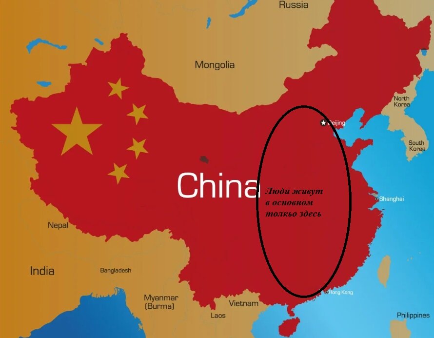Население Китая это полтора миллиарда человек, и 95% этих людей проживает на востоке страны. Большая часть территории Китая вообще пустует. В связи с этим можно не беспокоиться, китайцам еще свои земли освоить нужно. Но как так получилось, что западная часть собственной страны не привлекает китайцев? В западной части Китая, большая часть территории занята горами и пустынями, что делает этот регион менее привлекательным для жизни и развития экономики. Но китайцы не унывают, и одним из важных шагов стало строительство 500 километровой дороги через пустыню Такла-Макан, где была найдена нефть. Уверен, вскоре здесь появятся мегаполисы. Развивая свою экономику, Китай уничтожил примерно 30 тысяч собственных рек, которые как раз и протекают в основном на востоке страны. Даже самая главная артерия Китая, река – Янцзы истощена до предела. Поэтому новый технологический прогресс наверняка будет строиться, опираясь на ошибки прошлого. Так же не стоит забывать, что самая масштабная горная система пл