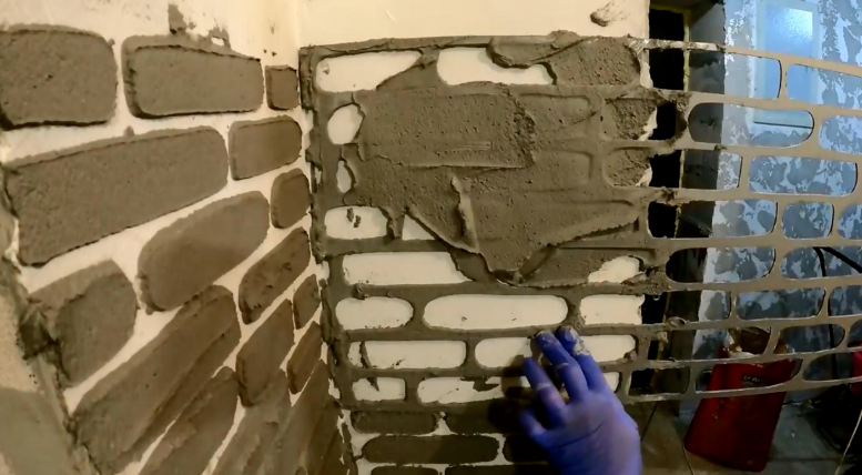 Пришло время наводить красоту в коридоре. И для этого я заранее приобрел на АлиЭкспресс алюминиевый трафарет для имитации кирпичной кладки. И мы принялись за работу. Трафарет Сначала я натираю его подсолнечным маслом и надеюсь, что гипсовая штукатурка не будет прилипать. Но скажу сразу – надежды на это не оправдались. Алюминиевый трафарет мне не понравился, поэтому советую брать пластиковый. Я начинаю лепить кладку снизу вверх. Если пойти сверху вниз, то можно столкнуться с проблемами: в нижнем ряду будет очень тяжело и неудобно прикладывать трафарет. Выравнивание Края я выравниваю обычной мокрой кисточкой, чтобы кладка смотрелась более естественно. От имитации идеально ровных кирпичиков мы с женой отказались. Это показалось банальным, а мы хотели чего-то новенького и необычного. Сначала я хотел по-быстрому сделать всю стену, а потом подравнять кирпичики мокрой кисточкой. Но процесс занял слишком много времени, а гипс быстро застывал… Мне на помощь пришла супруга. И хотя коридор у на