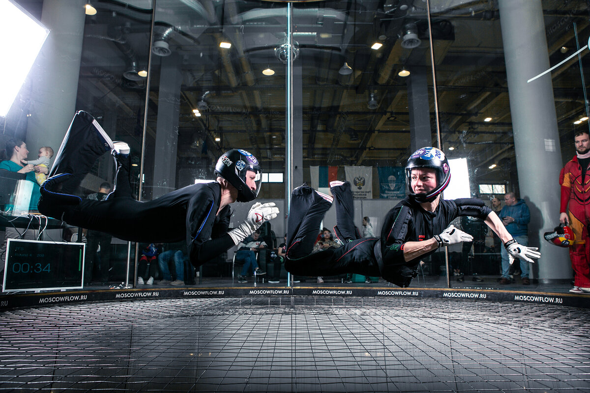 Аэротруба во FLOW MOSCOW обладает всеми необходимыми параметрами для подготовки к данной дисциплине. Ее диаметр составляет 4,5 метра, а высота – 20!