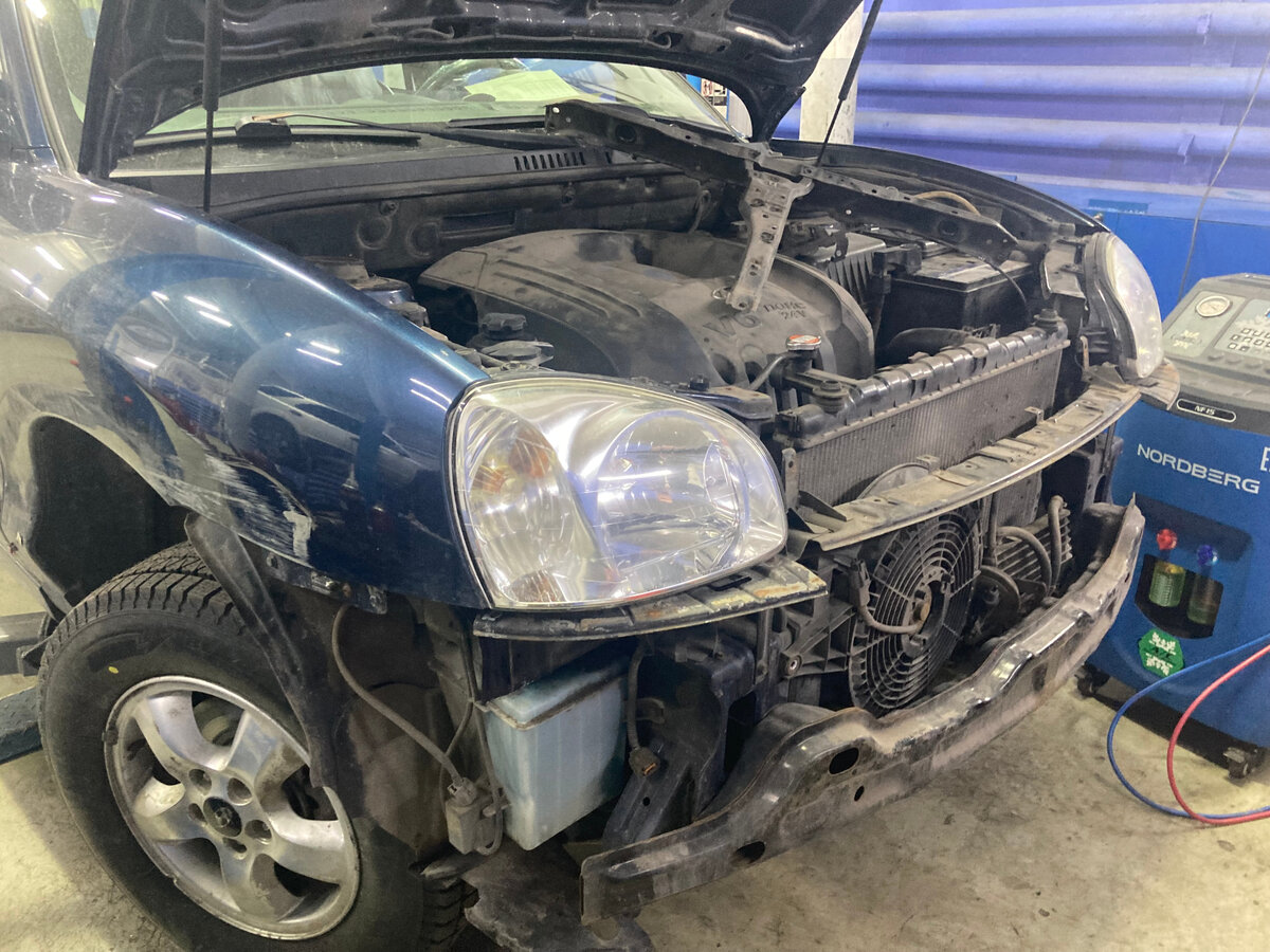 HYUNDAI SANTA FE 2011г пробег 173000км Клиент обратился с плохо работающим кондиционером, В ходе осомтра выявлена утечка в корпусе радиатора кондиционера, производим замену на новый. Стоимость под ключ 15000руб