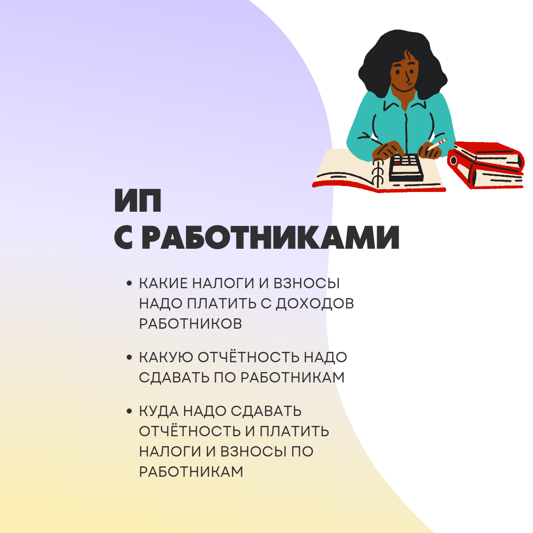 Начнём с уплаты налогов и взносов. Если ИП нанимает работников, то ему нужно будет уплачивать с их доходов НДФЛ, страховые взносы и взносы на травматизм. Рассмотрим всё по порядку👇.