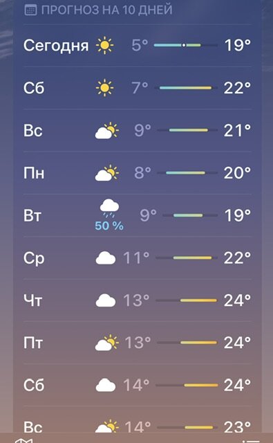 ПРИВЕТСТВУЮ ВСЕХ НА КАНАЛЕ "МОЯ ДАЧНАЯ ЖИЗНЬ" Многие огородники в марте спешат посеять томаты на рассаду, ибо руки очень чешутся и унять зуд нет сил. Потом в мае ждут в море погоды переживают, что рассада перерастает, а погода не позволяет высадить ее в открытый грунт. Вчера моя читательница-землячка спросила, можно ли уже высаживать томаты, а то они превратились в маленькие пальмы. Так когда уже можно высаживать томаты в открытый грунт? Наука в этом деле ориентируется на среднесуточные показатели температуры. Сигналом для высадки рассады в открытый грунт должен послужить этот показатель в 15℃ и выше. При этом ночная температура не должна опускаться ниже 10℃. Чтобы определить значение среднесуточной температуры, нужно сложить значение дневной и ночной температур и разделить на два. Ниже скрин страницы приложения "Погода" в нашей Курской области. Со вторника следующей недели можно высаживать смело рассаду на постоянное место. Есть еще один показатель разрешающий или запрещающей высадку