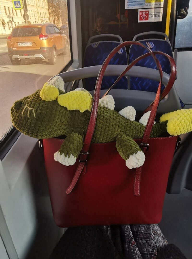 К чему это я запела песни старухи Шапокляк? Меня тут ей назвали прямо на улице. Иду я после урока по вязанию игрушек домой. На уроке закончили вязать Дракончика Соню, дополнительного пакета я не взяла, а в сумку моя красавица не помещается. Решила положить ее сверху. Иду, солнышку радуюсь. Навстречу женщина с двумя детьми. Мальчик лет 8 и девочка лет 5. И вдруг девочка громко говорит: - Мама, смотри тетя как Шапокляк!!! Только у нее вместо Лариски кто-то другой. Поравнялись с женщиной и девочка добавляет : -И тетя вроде не вредная. Соня их заинтересовала, попросили визитку. Поэтому я всем и каждому советую - увидели, что-то интересное не стесняйтесь подойти и спросить. Не вредная тётя точно все расскажет. История меня повеселила, решила и с вами поделиться хорошим настроением. Как похожа я на Шапокляк?