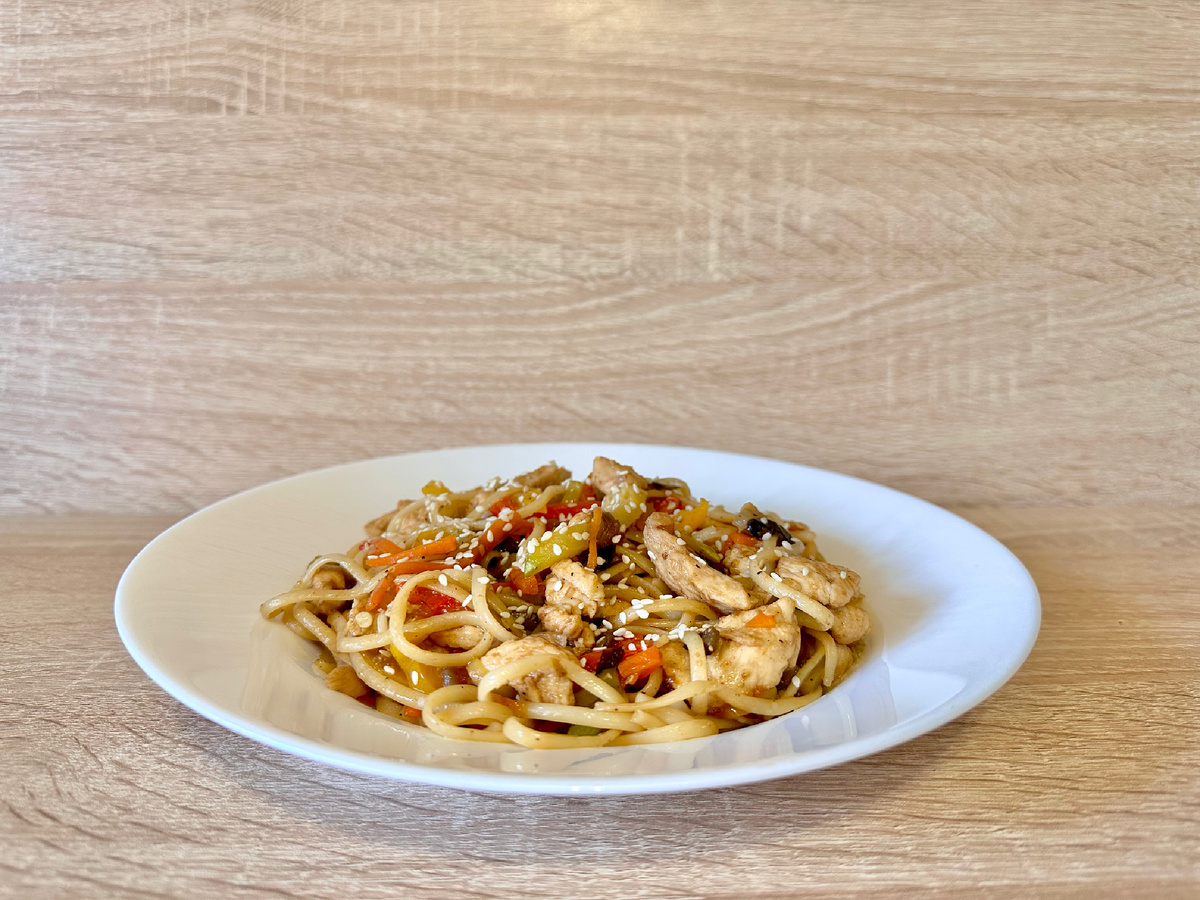 - Добавляем соевый соус, измельченный чеснок, кунжут.