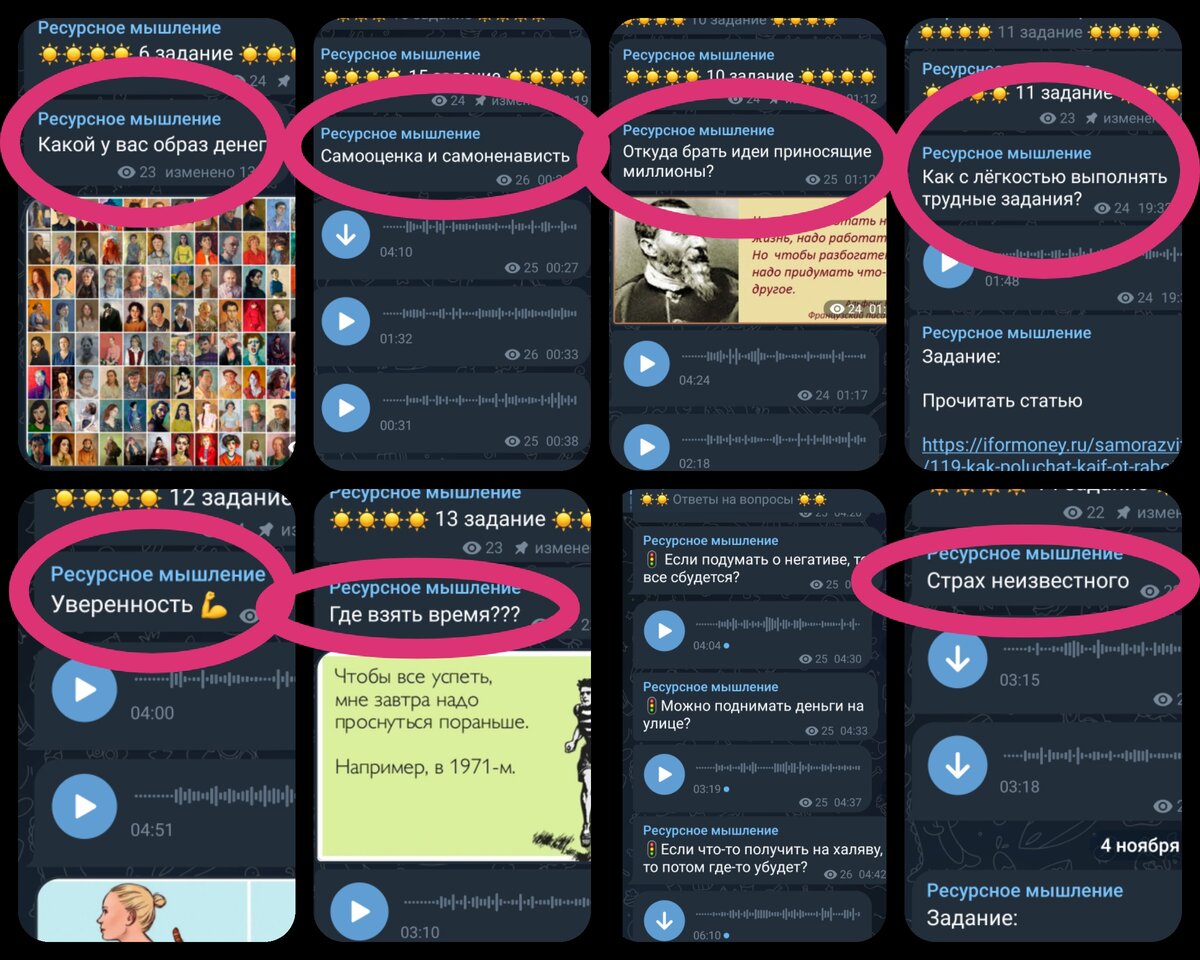 Что такое мой закрытый телеграмм канал и как туда попасть? Это 17 заданий, которые помогут выявить ментальные причины ваших трудностей: ✅️увидите какой у вас образ денег и какое к ним отношение, ✅️правильно трансформируете денежные ограничения, без зачитывания позитивных аффирмаций, ✅️поработаете с самооценкой и самоненавистью, ✅узнаете ️откуда брать идеи приносящие миллионы, ✅️где взять время, ✅️что добавит уверенности, ✅️найдёте какие ценности вы оберегаете не вырастая в доходах, ✅️поймёте как с лёгкостью выполнять трудные задания, ✅️иначе посмотрите на страх неизвестного и многое другое! Самостоятельное прохождение без ограничений по времени, выбираете комфортный для себя темп и занимаетесь в любое удобное время. Доступ навсегда. Стоимость входа - 990 р. Оплата через официальный сайт ⬇️