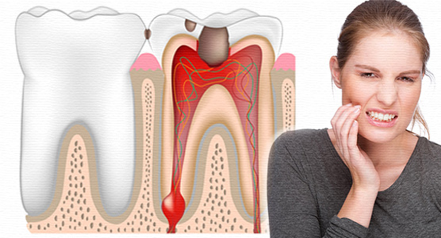 • irreversible pulpitis: constant dull throbbing pain, sharp spontaneous pain and tenderness on percussion or pain that increases in the lying position.