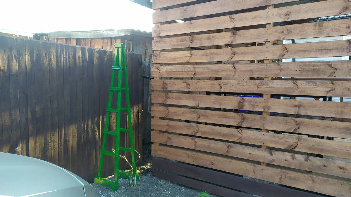 Сегодня достала из места зимнего хранения всяческие садовые приспособы: лесенки для вьюнов, деревянные кашпо и т.п. Прошлогоднее нужно было починить, сделанное нынче - покрасить. Потом всё расставить по местам, кашпо заполнить грунтом, поддержки для вьюнов пришпилить к земле длинными проволочными скобами. Начала с покраски новых поделок. Первая на очереди - высокая пирамидальная лесенка. Она предназначена для конкретного места - вьюн, для которого она будет служить опорой будет прикрывать щель между задней стенкой беседки и соседским сараем. А то со входа вид некрасивый. Вторая опора квадратного сечения предназначена для маскировки кривизны фонаря. Естественно, по ней тоже будет виться какой-нибудь скалолаз. Выкрасила, дождалась пока краска немного подсохла и установила на предназначенные им места. Так, теперь прошлогодние. Большое деревянное кашпо с решёткой. Его я сначала отремонтировала (в прошлом году под тяжестью земли выпали нижние доски), с помощью строительного степлера заново