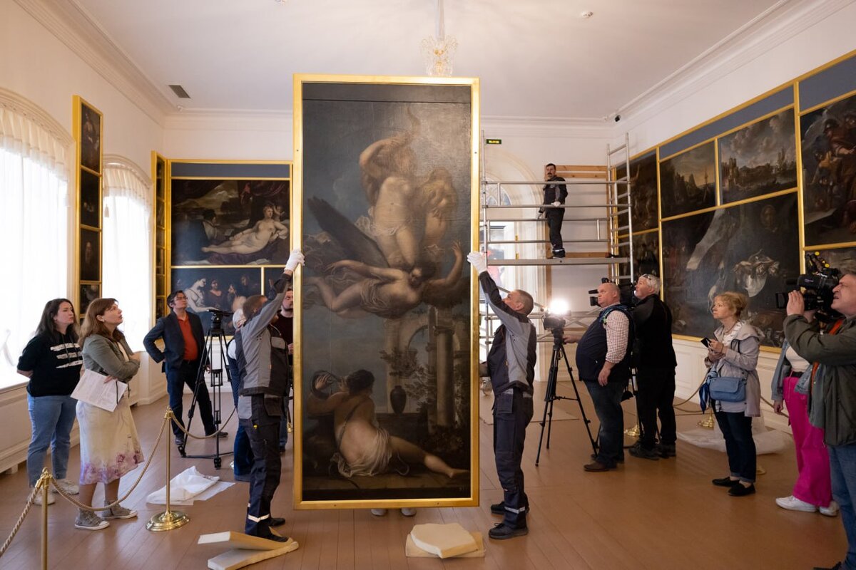 В галерею «Картинного дома» в Ораниенбауме после проведения реставрационных работ вернулась на свое историческое место картина «Три парки» венецианского мастера XVII века Себастьяно Маццони. ☝️Возвращение полотна — важное событие для музея-заповедника «Петергоф». Это одна из картин, которая входила в собственную живописную коллекцию будущего императора Петра III. Реставрация В ходе реставрационных работ, которые длились 4 месяца, была выполнена регенерация, утоньшение и выравнивание пожелтевшей лаковой пленки, удалены старые реставрационные тонировки, благодаря чему авторский красочный слой вновь приобрел характерный для венецианской живописи сияющий, «жемчужный» колорит. Важным результатом проведенных работ стало выявление в левом нижнем углу картины фрагмента авторской подписи – [MAZZ]ONI – существование которой ранее было неизвестно специалистам. Открытие является дополнительным аргументом в пользу атрибуции, предложенной И. С. Артемьевой. Сюжет «Три парки» написаны на сюжет антич