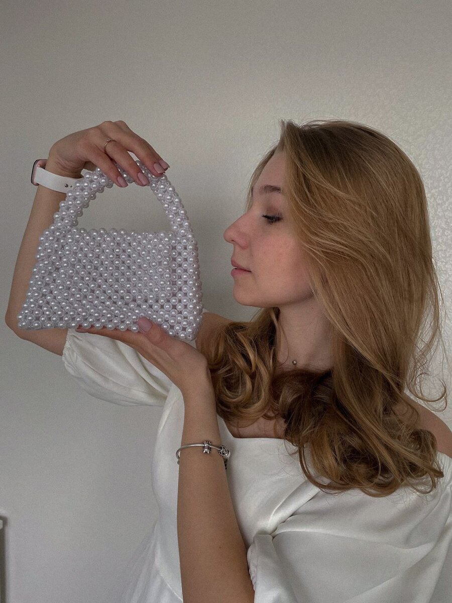 На свою свадьбу я сплела сумочку из жемчужных бусин. Это совсем не сложно, как может показаться на первый взгляд, поэтому и хочу научить других. На моем YouTube канале еще больше моих видео о плетении сумок Для начала прочитайте предыдущий пост, где я рассказала о всех необходимых материалах. Поэтому здесь наглядно покажу КАК ЖЕ ПЛЕТЕТСЯ СУМКА ИЗ БУСИН. Обязательно соедините концы лесок, чтобы они были одинаковой длины. Таким образом, первый ряд - это длина нашей сумки будущей сумки. У меня получилось длина в 13 бусин. У первого ряда немного отличается техника плетения. Теперь нам нужно повернуть на следующий ряд Для этого мы на НИЖНЮЮ леску набираем 3 бусины, а верхней проходим в крайнюю бусину (рис. 4.) Теперь мы снова набираем на правую леску 3 бусины и левой леской проходим в последнюю. УРА! Мы повернули на второй ряд. Левой леской обязательной проходимся за нижнюю бусину, чтобы зацепить наше плетение. А на правую леску набираем по 2 бусины и левой проходимся в последнюю (рис