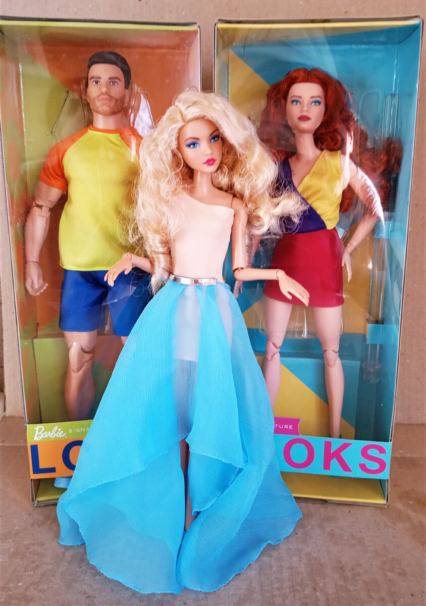 Доброго всем дня! В начале февраля я и несколько других авторов на Дзене заказали новых Барби Looks этого года, тех самых, цветных. И вот наконец они начали добираться до заказчиков! Очень будет интересно, как обладатели этих кукол их преобразят? С нетерпением буду ждать новеньких на каналах "Истории из моей коллекции" и "Мир кукол. Мои куклы Барби"! А пока что покажу первый взгляд на приехавших - еще их не распаковывала, они НРФБ. Барби с молдом Карл, Эль и парня-азиата я изначально не хотела, но купила трех других. Это самый мой любимый типаж - кукла с рыжими волосами и зелеными глазами - Виктория! Блондинка из первой волны Looks меня не привлекла, но эта просто должна быть у меня. И ей уже заранее подготовила новый аутфит, это будет очень круто! Вторая - Андра, у нее несколько спорный тип внешности, но я попытаюсь его максимально улучшить. Изначально отказалась от ее пышного тела, и теперь она на обычном. Посмотрим, какие наряды ей пойдут. И последним идет Тейт - мускулистый мужчин