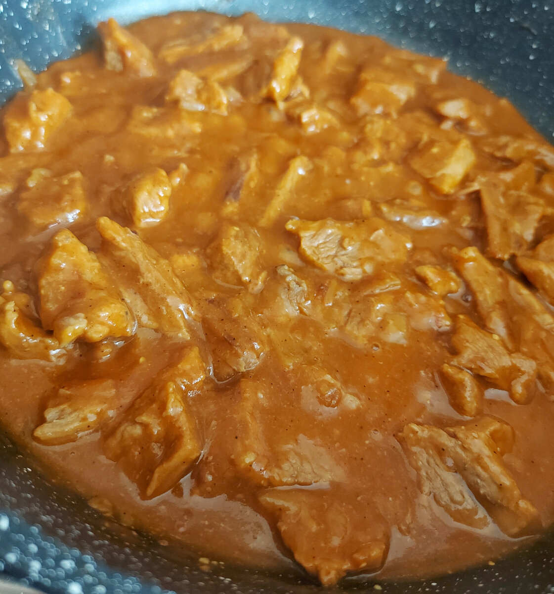 Нам понадобится: Мякоть говядины - 500 гр. Вода - 500 мл. Лук репчатый - 1 шт. Томатная паста или кетчуп - 3 ст.л. Мука - 1 ст.л. Соль по вкусу Специи по вкусу (паприка, чёрный перец, сушёный чеснок) Лук нарезаем средними кусочками. Кубиком или недлинной соломкой нарезаем мясо. Обжариваем мясо на сковороде с растительным маслом около 15 минут, помешивая. Добавляем к мясу лук, специи и соль по вкусу. Жарим на среднем огне до мягкости лука. Добавляем ложку муки. Перемешиваем и жарим около 3 минут. Затем добавляем кетчуп или томатную пасту, разбавленную водой. Перемешиваем и заливаем водой. Тщательно перемешиваем воду с мясом, чтобы томатный соус был однородной консистенции. Тушим на медленном огне примерно час. Наше блюдо готово! Полезный совет: подавайте гуляш с пюре - это идеальный гарнир к данному блюду. Приятного аппетита! Готовьте с любовью для себя и своих близких ❤