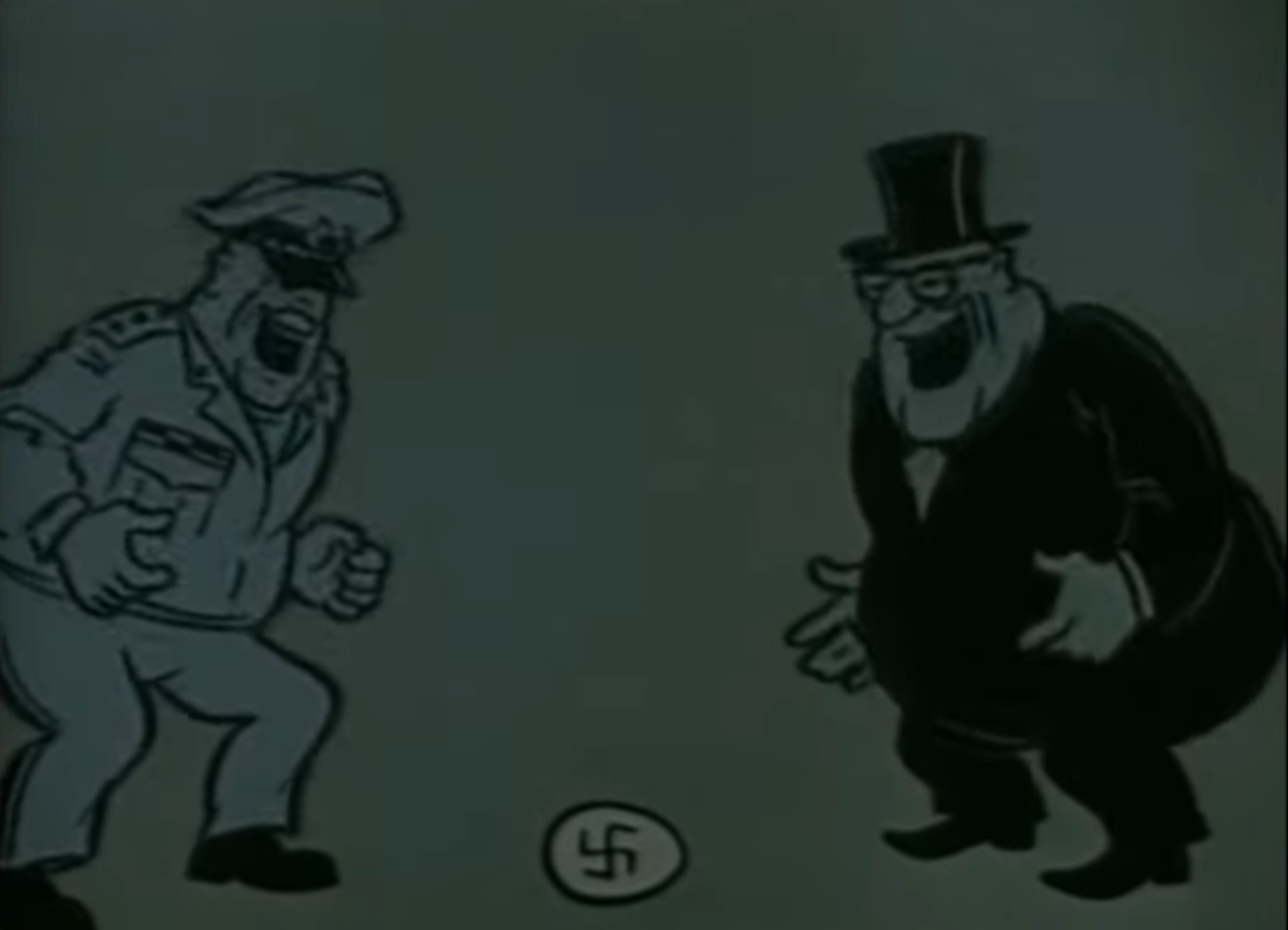 Начало такое: Капитализм: я ненавижу коммунизм, мне не разрешают воевать. Нацисты: Так я, давайте объединимся? Коммунизм: О, черт! (Здесь не показан коммунизм, но первой целью нацистов было убить коммунизм, кстати)