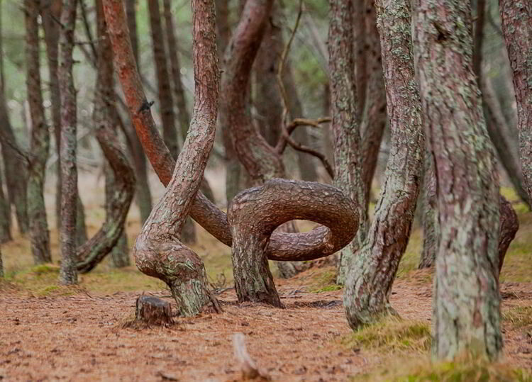 У России тоже есть нечто подобное, но с более благозвучным названием. В самой западной части нашей страны, в Калининградской области, на территории национального парка «Куршская Коса» есть свой неординарный сосновый бор под названием Танцующий Лес.