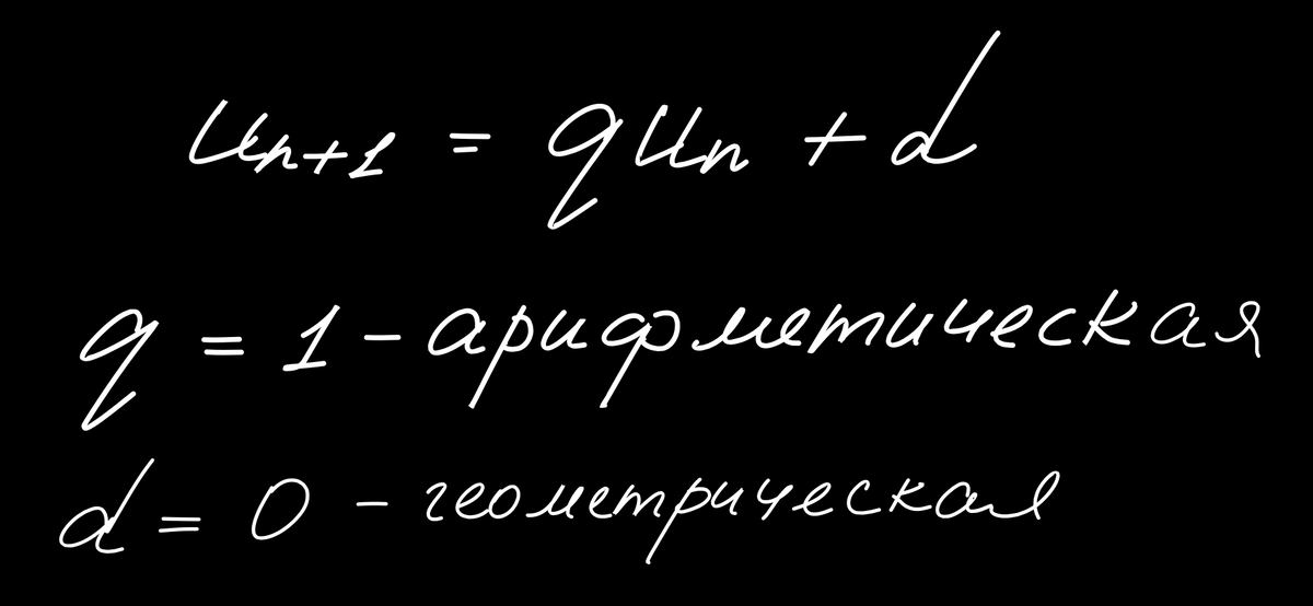 Приветствую Вас, уважаемые Читатели! Сегодня мы на конкретном примере разберемся, что это за гибрид известных всем со школы последовательностей. Итак, общая формула арифметико-геометрической прогрессии записывается следующим образом: Проще говоря, n-й член арифметико-геометрической последовательности является произведением n-го члена арифметической последовательности и n-го члена геометрической. Явная формула для конкретного члена геометрической прогрессии имеет вид: Но нам, конечно, интересно, чему равна сумма! Для этого рассмотрим конкретный пример и выведем всё посредством стандартных рассуждений. Найдем сумму такого ряда: Из постановки задачи понятно, что члены этого ряда образуют арифметико-геометрическую прогрессию, но нам нужно убедиться в этом и определить её коэффициенты: Теперь запишем наш бесконечный ряд в общем виде: Вторая копия получается умножением на коэффициент геометрической прогрессии. Теперь вычитаем второй ряд из первого и получаем: Наши манипуляции позволяют нам в