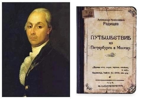 13 мая 1790 года вышло из печати «Путешествие из Петербурга в Москву». Автор - управляющий Петербургской таможни Радищев (1749-1802), осуждал основы общественного устройства, сочувствовал крестьянам, которые выражаясь современным языком, были вынуждены бороться за свои права. «Рецензия» на книгу последовала с самого «верха» - от императрицы Екатерины II. Своего бывшего пажа она охарактеризовала так: «Бунтовщик, хуже Пугачева».