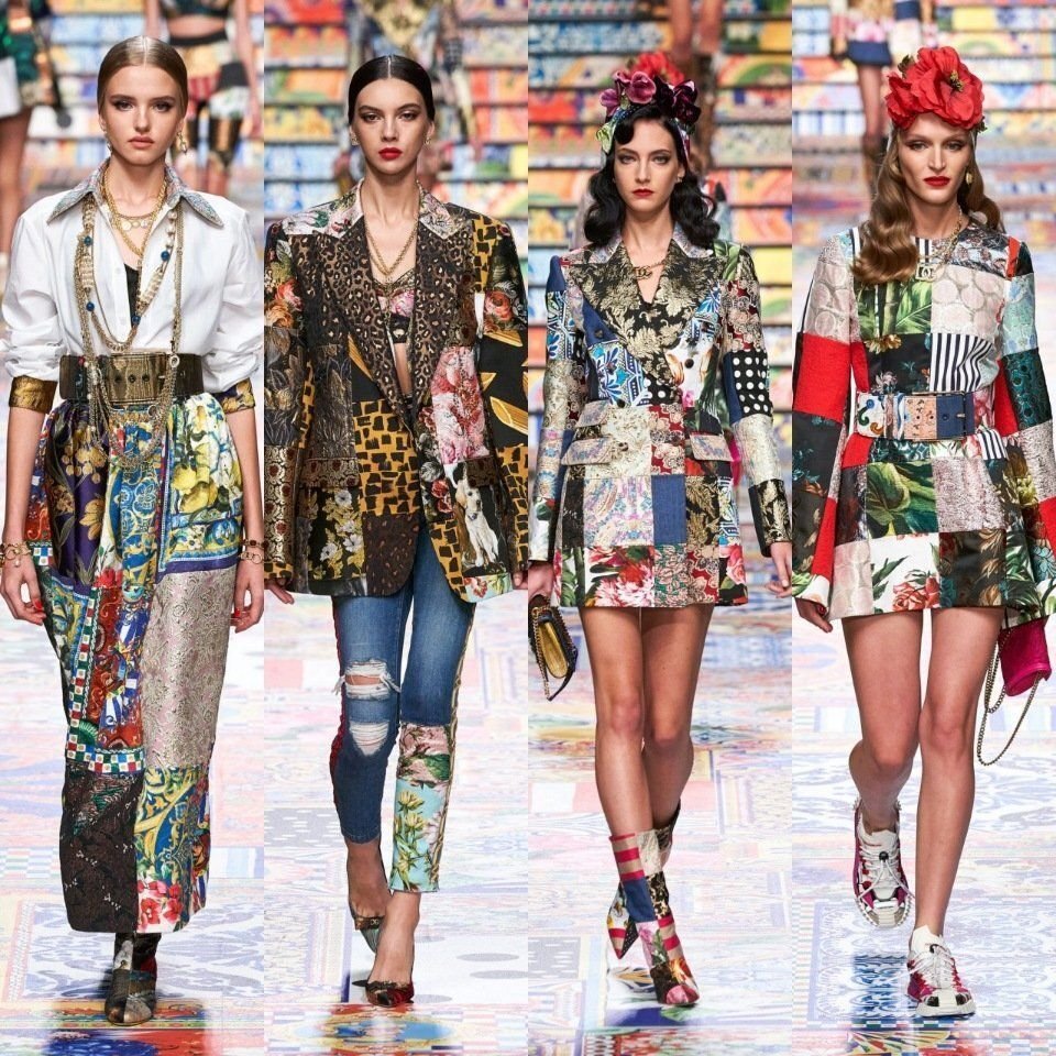 Я не большая поклонница показов мод и модных коллекций от именитых брендов: чаще всего это что-то совершенно неносибельное, странных фасонов и текстур. Однако коллекция Dolce & Gabbana весна-лето 2021 произвела на меня такое впечатление, что я даже решила об этом рассказать. Фишка этой коллекции в том, что она выполнена из обрезков старых материалов в стиле пэчворк, а ее основная тема — солнечная Сицилия во всем ее многообразии. Эта коллекция о родине Доминико Дольче — об острове, где всегда тепло, ярко и весело. И коллекция "Сицилийского пэчворка" — глоток свежего воздуха в модной индустрии, которая находится сейчас в стагнации. После всех этих карантинов, изоляций и ужасов прошлого года людям нужна радость. Нужен повод для счастья и позитива. И эта коллекция может нас ими зарядить. И, конечно, коллекция нетипична. Она собрана буквально из обрезков старой ткани, но были в ней и другие особенности, которые я сегодня предлагаю отследить. Цветочный принт Конечно, в условиях будто бы выс